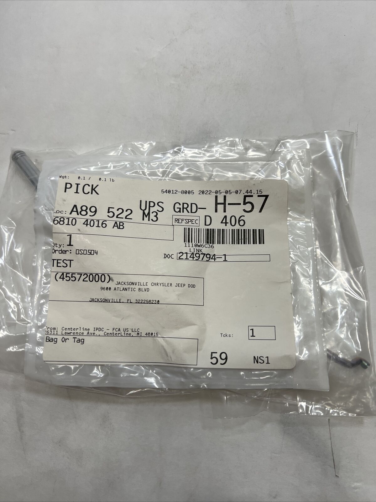Genuine Mopar Lock Rod Right 68104016AB.