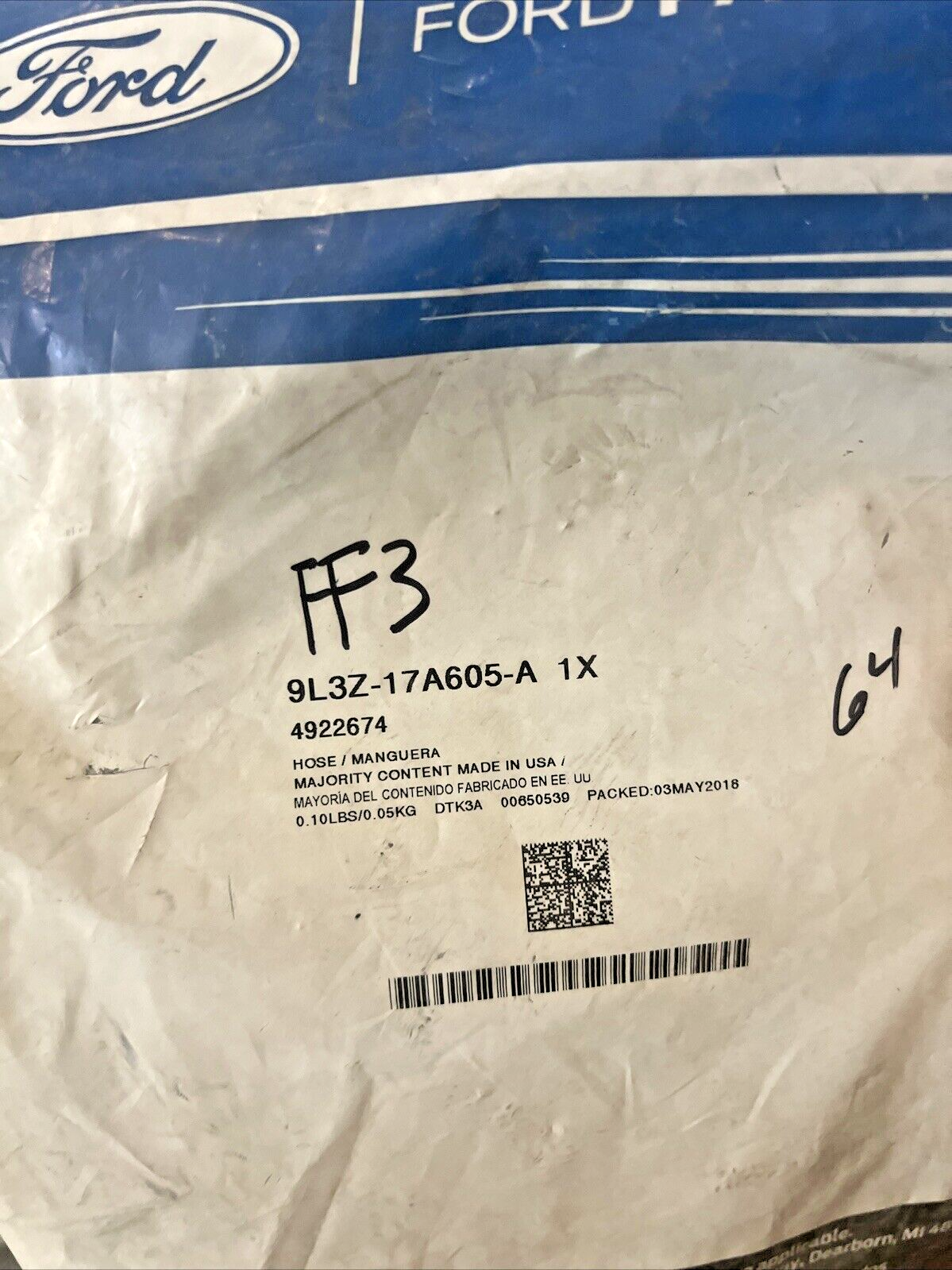 Genuine OEM Ford F-150 Windshield Wiper Wash Hose 2009-2014 9L3Z17A605A.