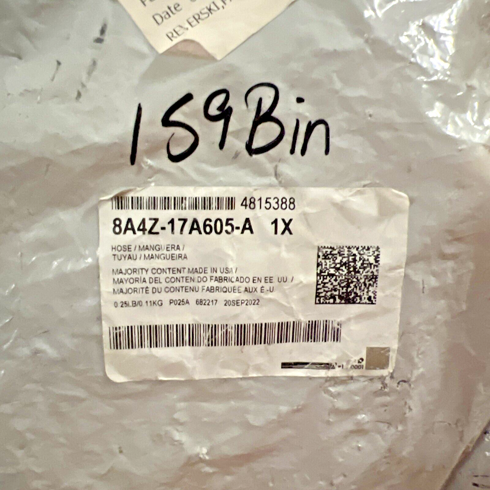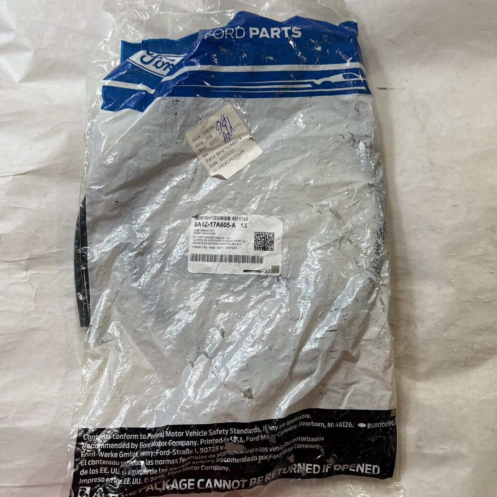 Genuine OEM Ford Taurus X Lower Windshield Washer Hose 2008-2009 8A4Z17A605A.