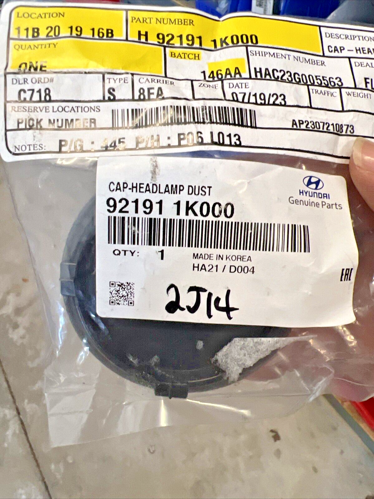Genuine OEM Hyundai Elantra Head Light Lamp Dust Cap Cover 2011-2017 921911K000.