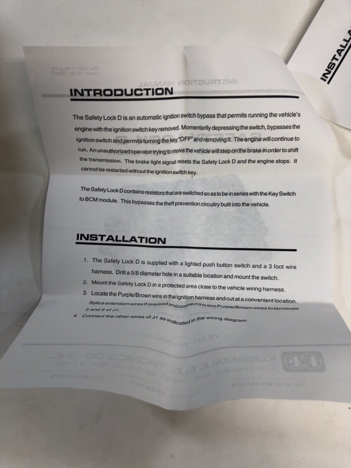 Kussmaul Automatic Ignition Lock kussmaul 091-174. Condition is New.