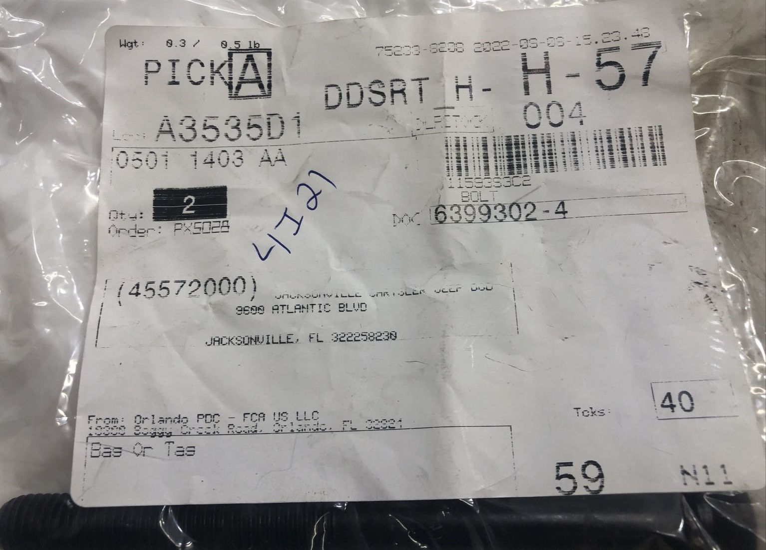 Mopar 05011403AA Engine Cylinder Head Bolt-Base, VIN: 6.