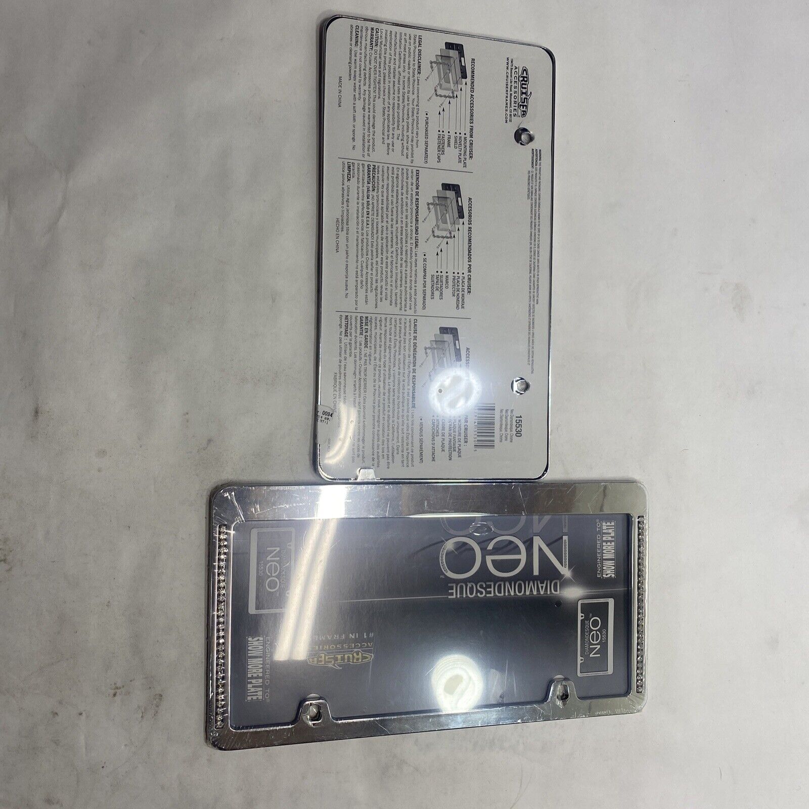 2 Clear New  Auto-Car-Truck Diamond Bling Crystal Chrome License Plate Tag Frames 15530.