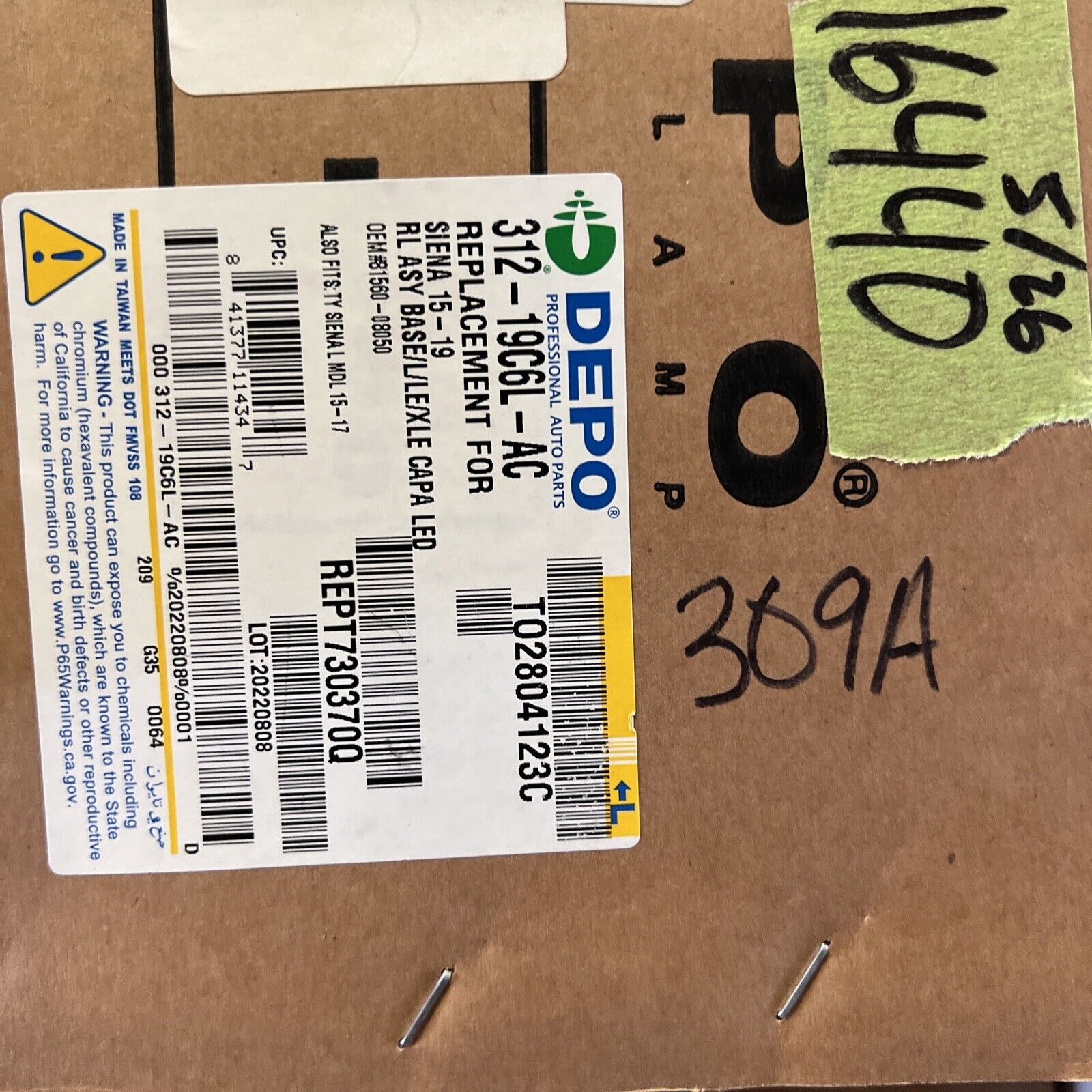 New DEPO for Toyota Sienna 14-20 Rear Tail Light Assembly 8156008050