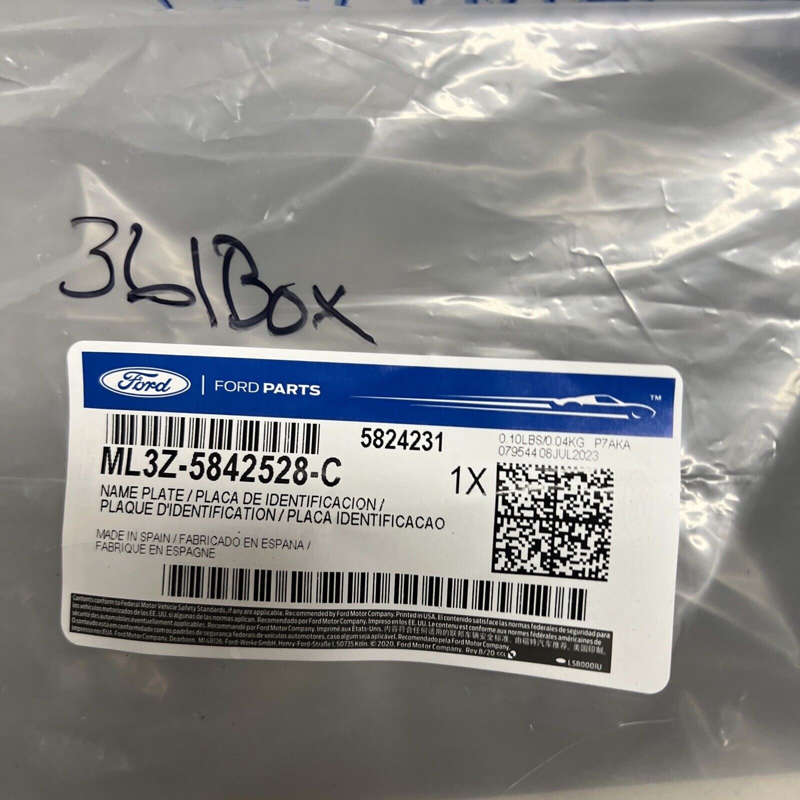 New OEM Genuine Ford NamePlate ML3Z5842528C.