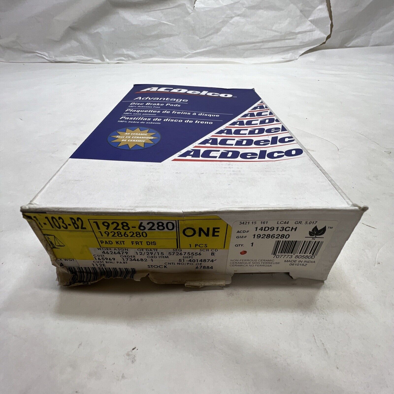 New OEM GM ACDelco 14D913CH Ceramic Front Disc Brake Pad Set W/Hardware 19286280