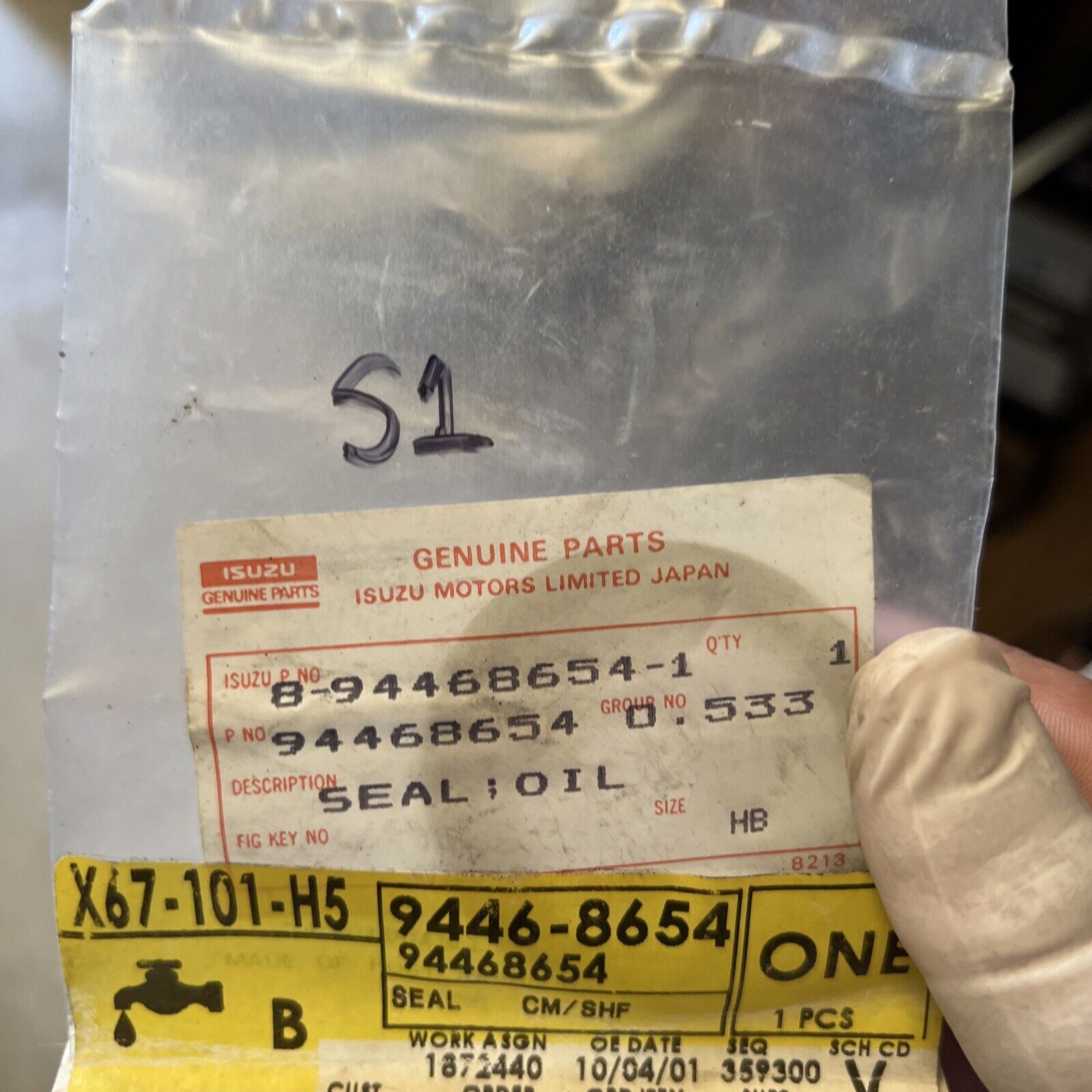 New OEM GM Chevy Spectrum Camshaft Oil Gasket 1985-88 94468654