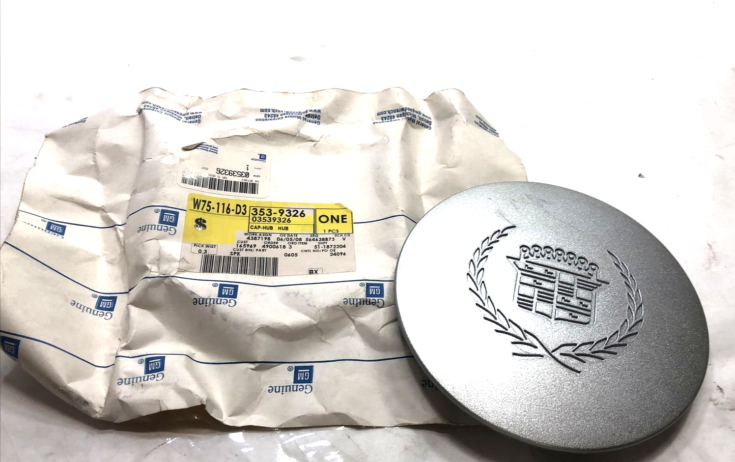 GM 3539326 Wheel Center Hub Cap Insert Cadillac Silver OEM NOS General Motors.